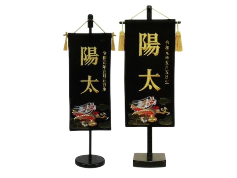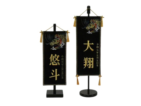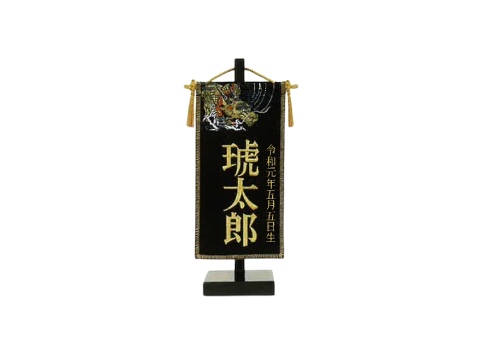 Name flag Embroidered Dragon Chirimen, Black, with Stand Extra Small Approx. 15 x 11 x 43cm Small Approx. 22 x 15 x 57cm